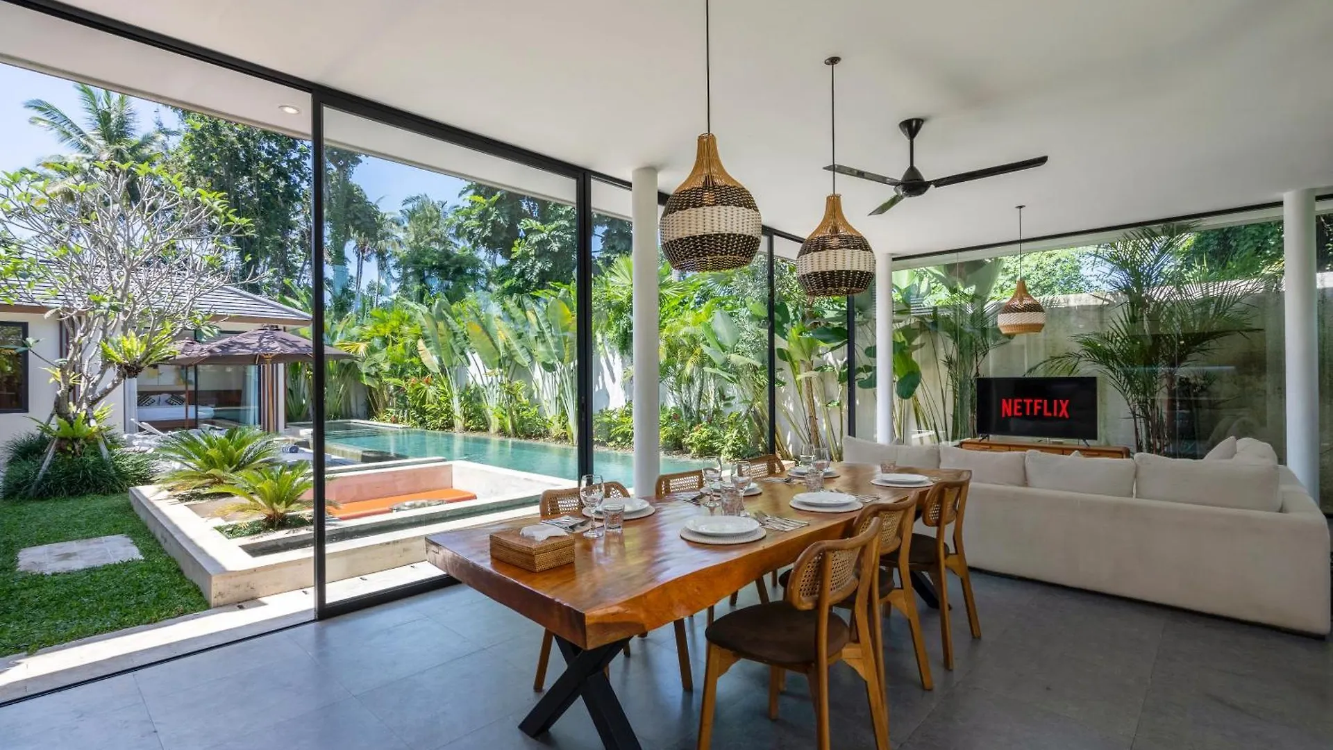 The property has the view of the private pool. A bidet, a separate toilet, and a shower are included in 3 bathrooms for guests' comfort. Also, guests can enjoy the convenience of hair dryers, towels, and slippers.